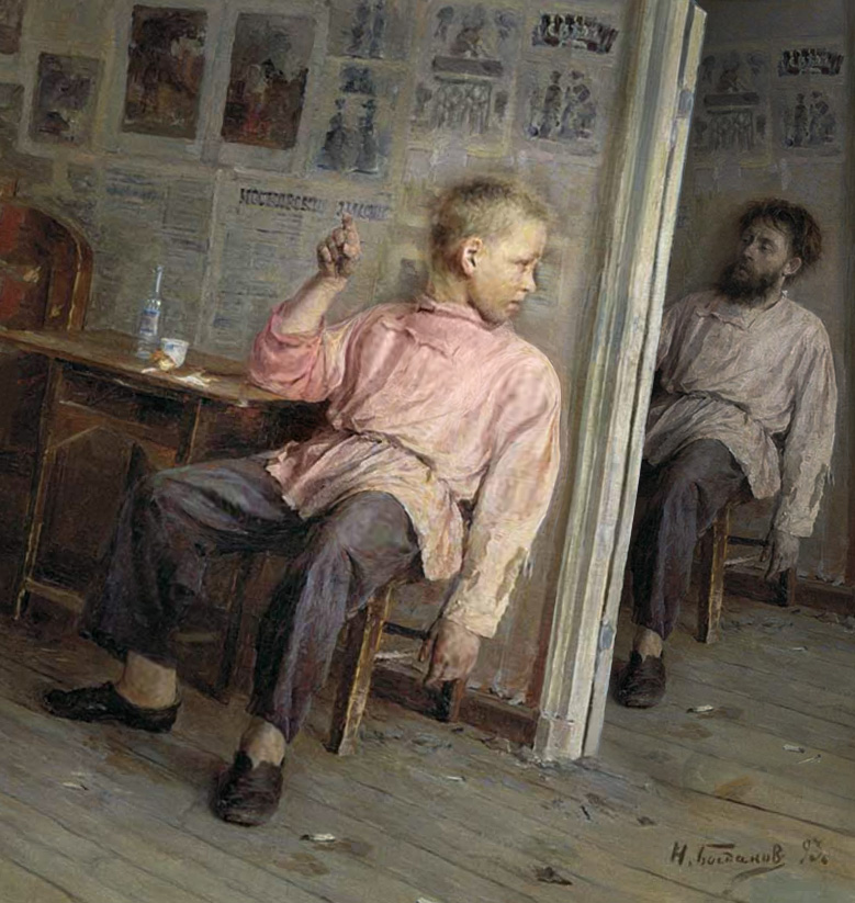 К жаблению предлагается картина кисти И. Богданова "Новичок", 1893 год. Битые картинки стираются на месте.На первом уровне только работы по делу. Кайф на фасад. Говно в треш. Тупых в бан.Неплохец (ники авторов - в названиях картинок):